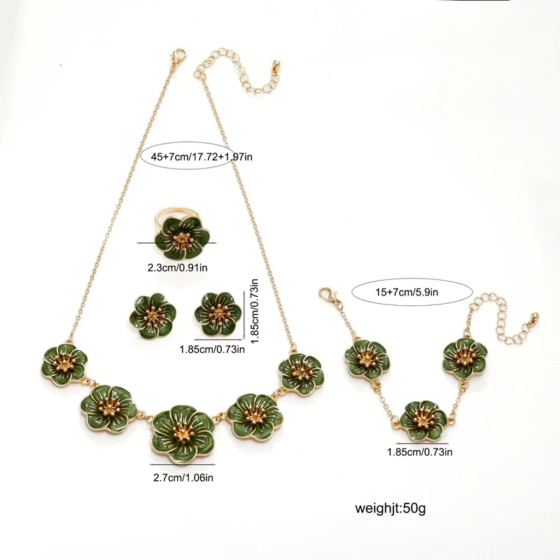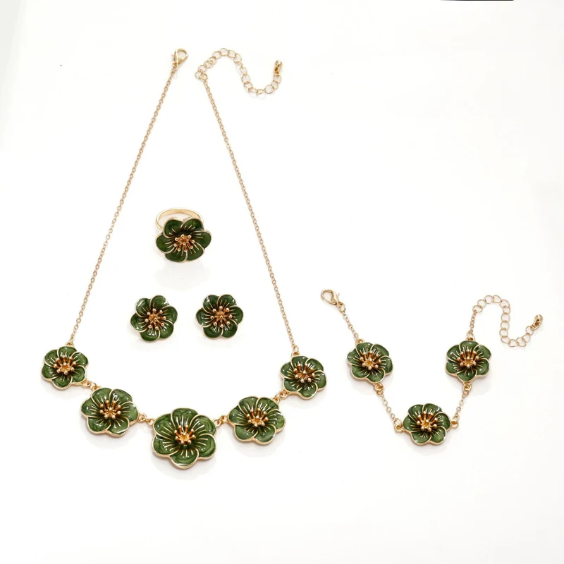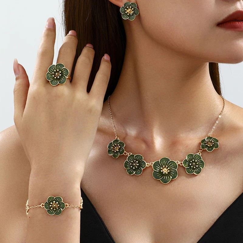 خمر بالتنقيط النفط زهرة قلادة قلادة أقراط سوار حلقة مجموعة للنساء أنيقة الأزهار سلسلة الترقوة مجموعة مجوهرات الحفلات
