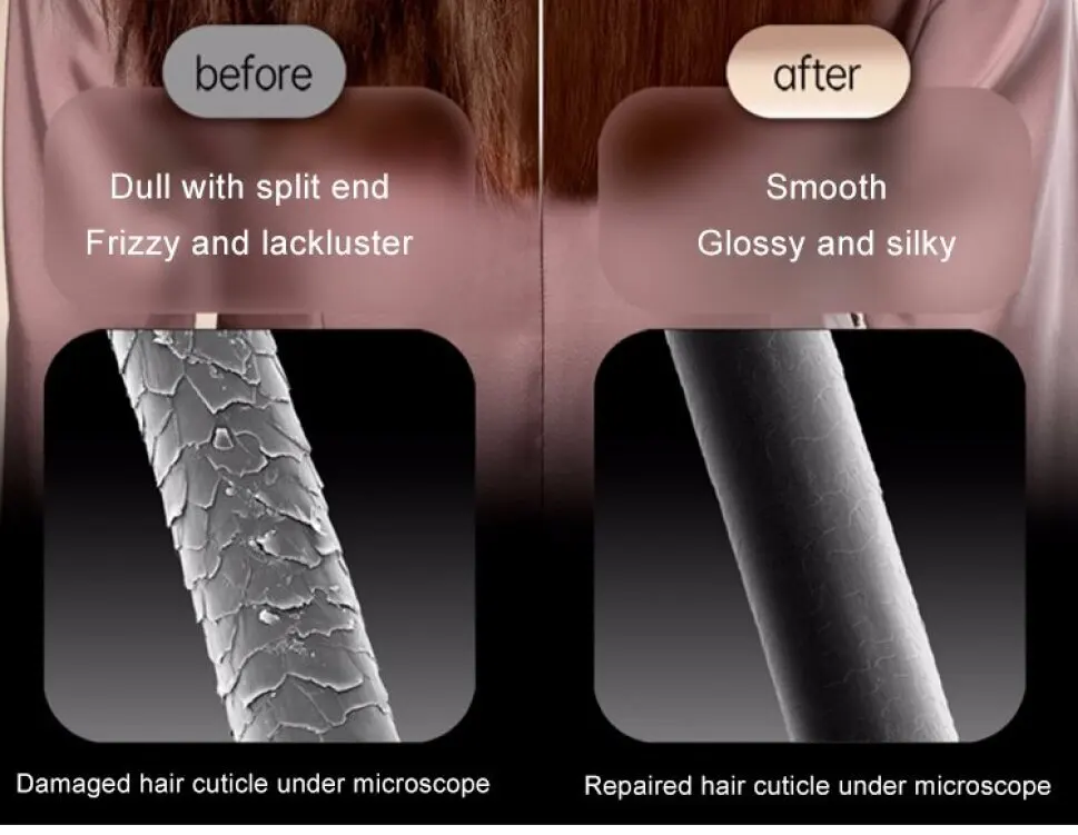 - تقنية الأيونات السالبة تقلل الكهرباء الساكنة وتضيف لمعانا طبيعيا للشعر.