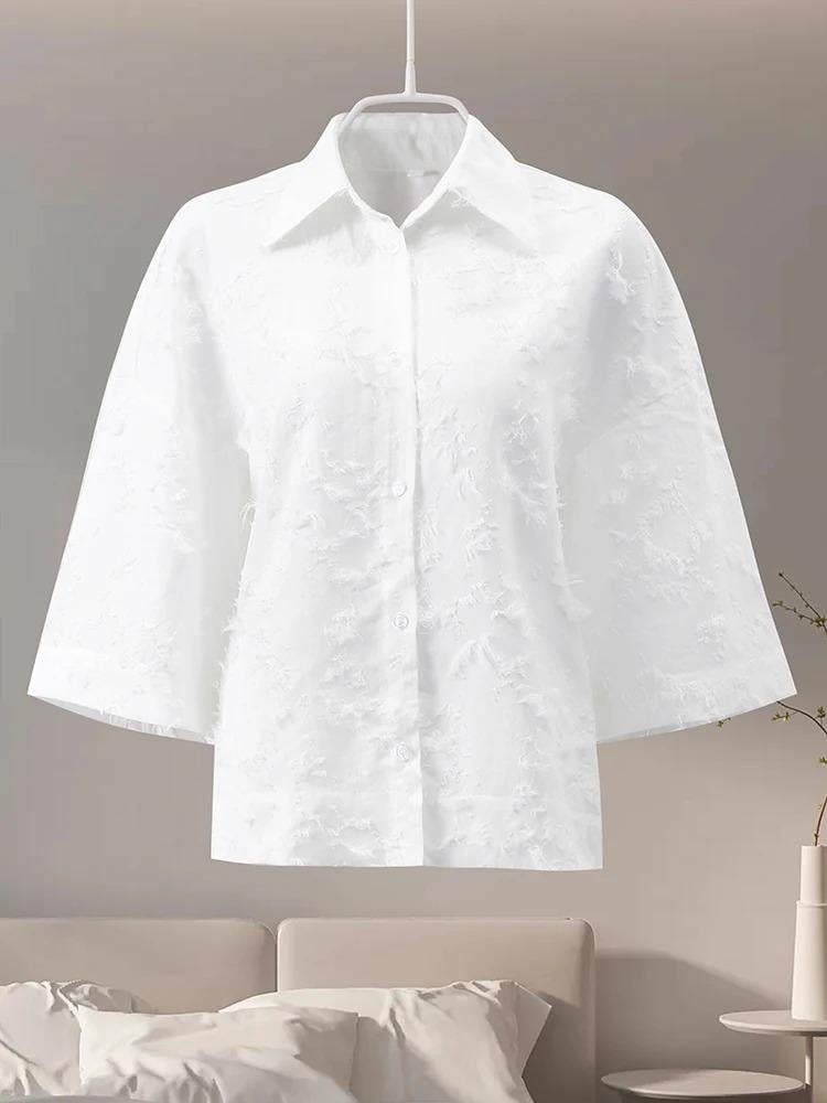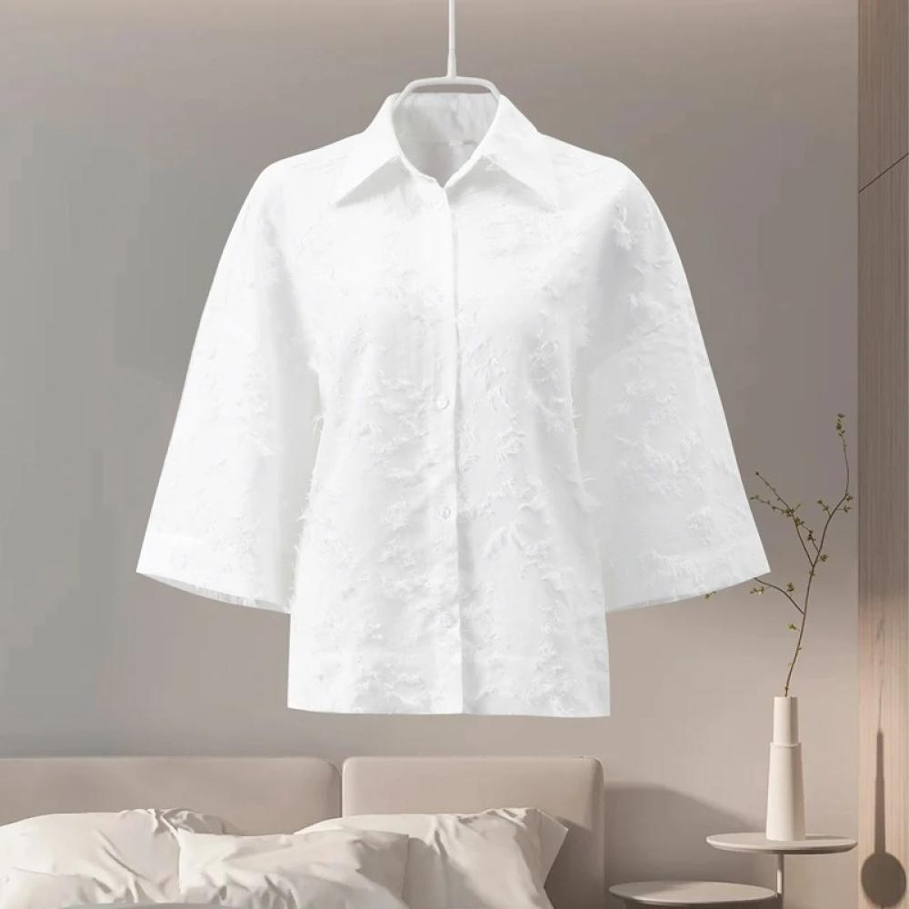 احصلي على إطلالة أنيقة وعملية مع هذا القميص النسائي الكلاسيكي، المصمم ليجمع بين الطابع الرسمي واللمسة العصرية. الأكمام الواسعة ثلاثة أرباع تضيف بساطة وحرية حركة، مع ياقة رسمية وأزرار أمامية كاملة لإطلالة منظمة ومتقنة.